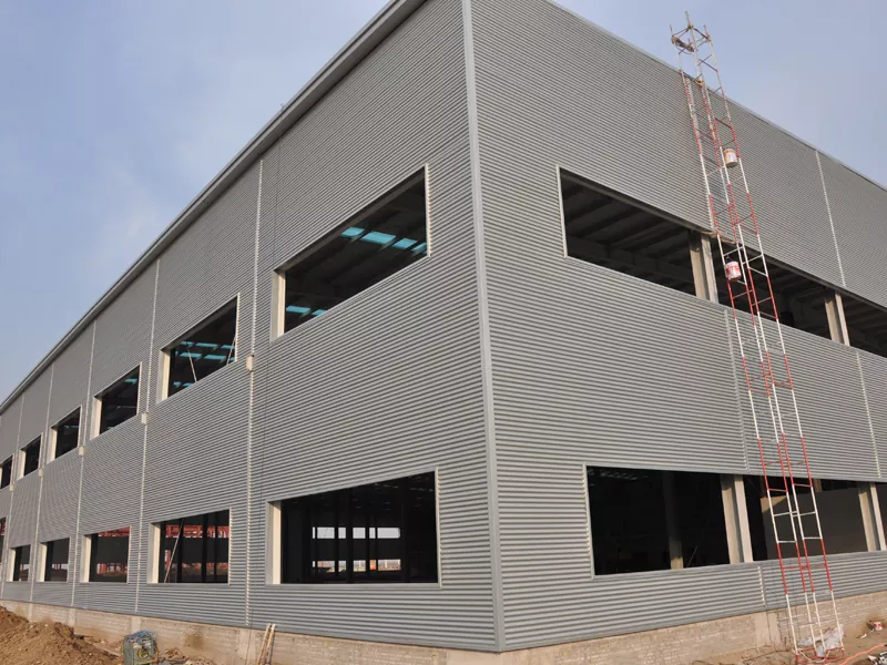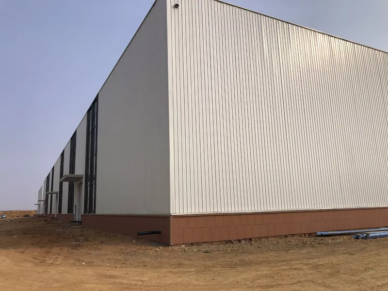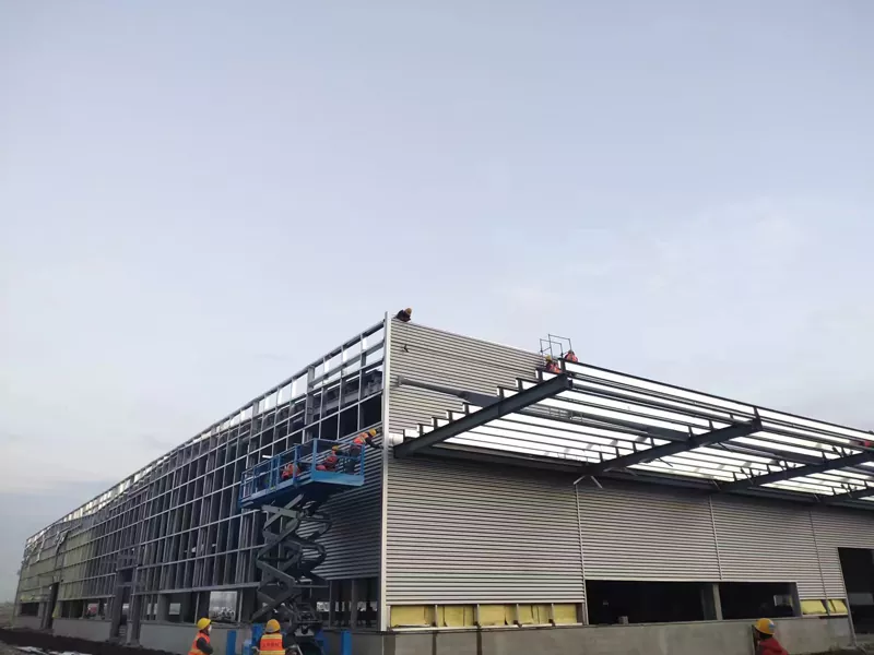 Ang malaking span na istraktura ng bakal na sandwich panel wall system ay isang mahusay at pinagsamang solusyon sa enclosure. Ang sistemang ito ay binubuo ng dalawang layer ng mga panel ng metal sa loob at labas, na may isang insulating core material sa pagitan, na nabuo sa pamamagitan ng isang tuluy-tuloy na proseso ng pag-roll-form. Lumilikha ito ng isang yunit ng dingding na pinagsasama ang lakas, pagkakabukod, at pandekorasyon na pag -andar. Sa pamamagitan ng isang timbang sa sarili na mga 15-25 kg/m², makabuluhang binabawasan nito ang pag-load sa pangunahing istraktura, na ginagawang angkop para sa mahigpit na magaan na mga kinakailangan ng mga malalaking gusali. Nag -aalok ang sistemang ito ng dingding ng napakataas na kahusayan sa pag -install at napapasadyang mga kulay at texture sa ibabaw, na nagpapahintulot sa paglikha ng isang moderno at simpleng facade sa malalaking komersyal na kumplikado. Bilang karagdagan, ang disenyo ng pagkagambala sa thermal bridge ay binabawasan ang pangkalahatang koepisyent ng paglipat ng init ng gusali, pagpapahusay ng kahusayan ng enerhiya.