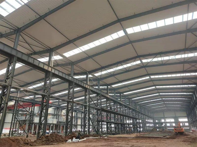 Ang mga prefabricated steel na bahagi ay inihahatid sa construction site at binuo gamit ang mga crane at iba pang mabibigat na kagamitan. Ang proseso ng pag-install ay karaniwang nagsisimula sa mga haligi, na itinayo at nakaangkla sa pundasyon. Pagkatapos ay naka-install ang mga beam upang ikonekta ang mga haligi, na bumubuo sa frame ng bodega. Ang mga trusses ng bubong ay itinayo at sinigurado sa frame, na sumusuporta sa sistema ng bubong.