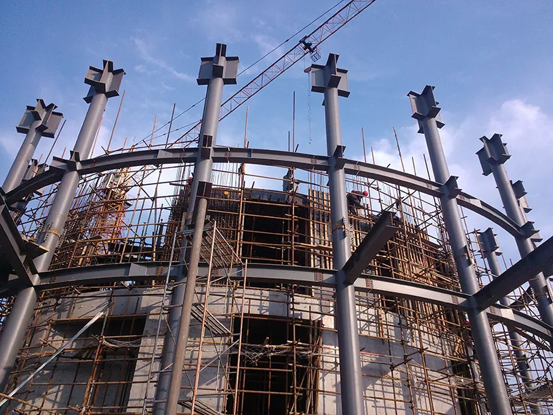Ang prefabricated na istraktura ng bakal na mataas na pagtaas ng mga gusali ay isang bagong uri ng form ng konstruksiyon na gumagamit ng mga pamantayang pamantayang pamantayang mga sangkap tulad ng mga beam ng bakal at mga haligi ng bakal bilang core system na nagdadala ng pag-load, na kung saan ay natipon sa site sa pamamagitan ng mga high-lakas na bolts o teknolohiya ng welding. Ang magaan at mataas na lakas na katangian ng bakal ay nagbibigay-daan sa mas malaking spans at nababaluktot na mga layout ng spatial, binabawasan ang mabibigat na pader ng tradisyonal na mga istrukturang kongkreto at pagpapabuti ng paggamit ng puwang. Kasabay nito, natutugunan nila ang mga pamantayan sa berdeng gusali - ang rate ng pag -recycle ng bakal ay lumampas sa 95%, at ang alikabok na konstruksiyon sa site ay nabawasan ng 70%. Malawakang ginagamit ang mga ito sa mga gusali ng opisina, apartment, hotel at iba pang mga mataas na gusali na higit sa 100 metro, na may mga kaso ng kinatawan kabilang ang panlabas na istraktura ng core tube ng Shanghai Tower at Shenzhen Ping isang sentro ng pananalapi.