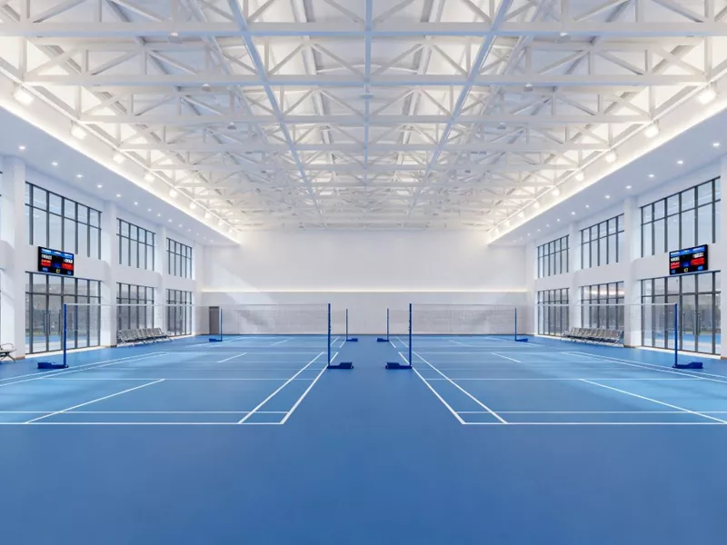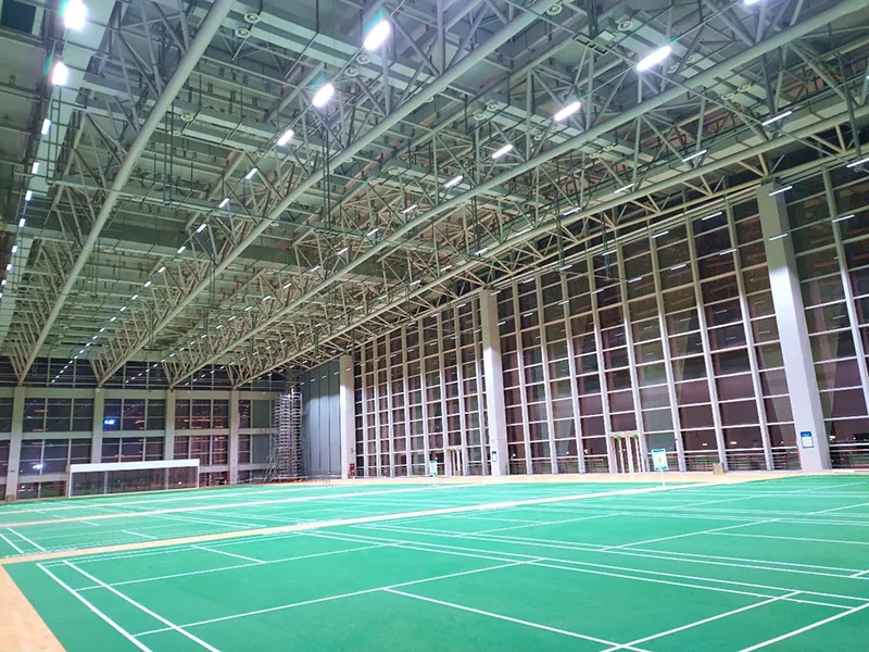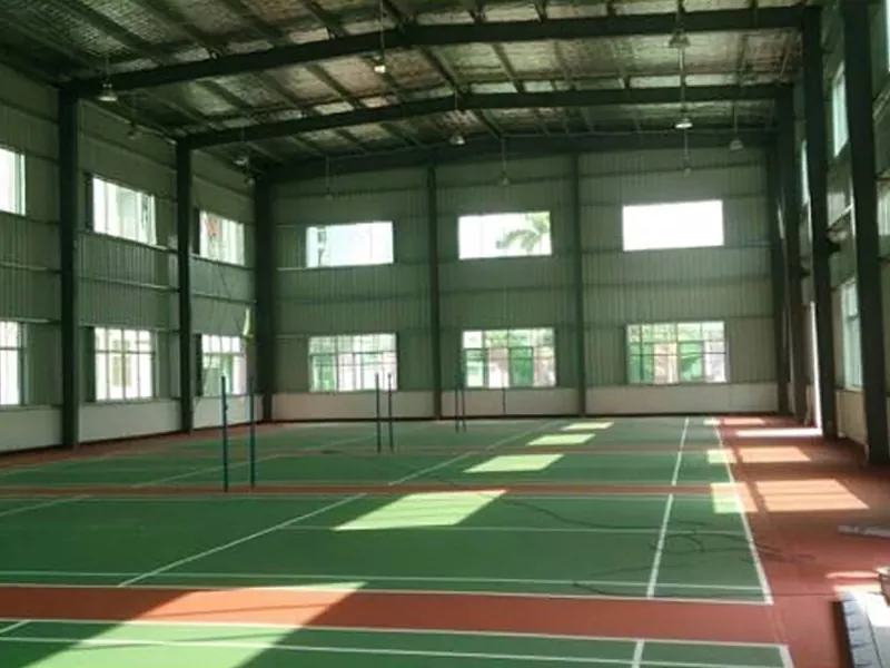 Malaking puwang na walang haligi: Kumpara sa tradisyonal na mga gusali ng konkretong istraktura, ang bakal na istraktura ng badminton hall ay hindi makamit ang mga haligi na humaharang sa view sa loob ng lugar, na lubos na nakakatipid sa puwang ng lugar at nagbibigay din ng isang mas mahusay na karanasan sa pagtingin para sa mga manonood.