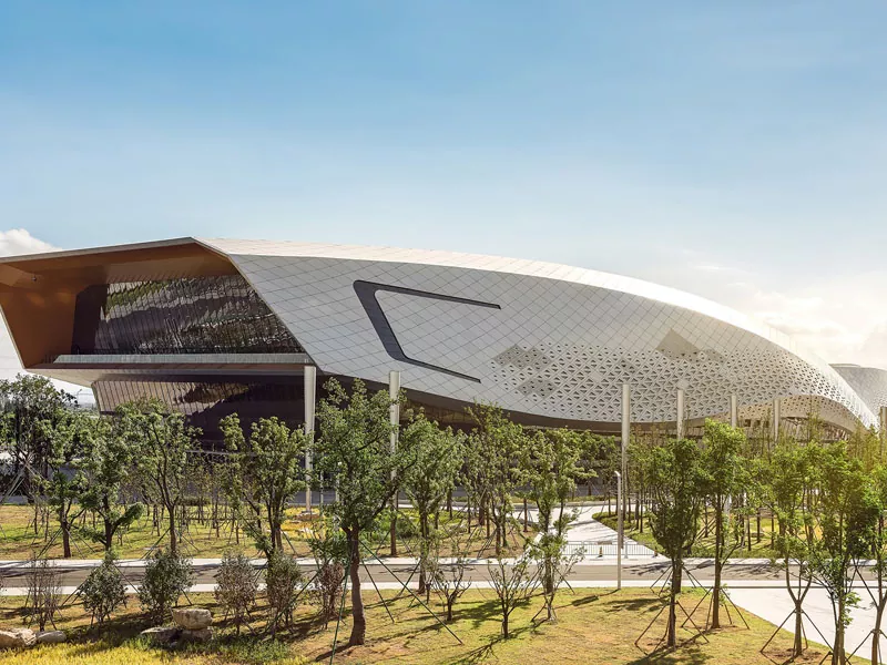 Ang mga istraktura ng istraktura ng sports center ay itinayo na may mataas na lakas na bakal upang lumikha ng mga malalaking spatial trusses at reticulated shells, pagkamit ng mga haligi na walang malaking lugar na nababaluktot na umaangkop sa mga hinihingi ng mga kaganapan sa palakasan, pagtatanghal, at mga aktibidad na multi-functional. Ang mga prefabricated na bahagi ng pabrika at mga pamamaraan ng modular na pagpupulong ay nagtatrabaho, binabawasan ang panahon ng konstruksyon sa pamamagitan ng 40%, na binabawasan ang polusyon sa site at ingay. Bilang karagdagan, isinasama nila ang intelihenteng control ng temperatura, photovoltaic bubong, at mga sistema ng pag -recycle ng tubig sa tubig, na binabawasan ang pagkonsumo ng enerhiya sa pamamagitan ng higit sa 30%. Ang natitirang seismic at paglaban ng hangin ng bakal ay nagsisiguro ng kaligtasan, habang ang naka -streamline na facade ng bakal at mga transparent na pader ng kurtina ay lumikha ng isang modernong imahe ng landmark. Pareho silang matibay at napapanatiling, na kumakatawan sa isang mahusay, berde, at matalinong pasilidad sa palakasan.